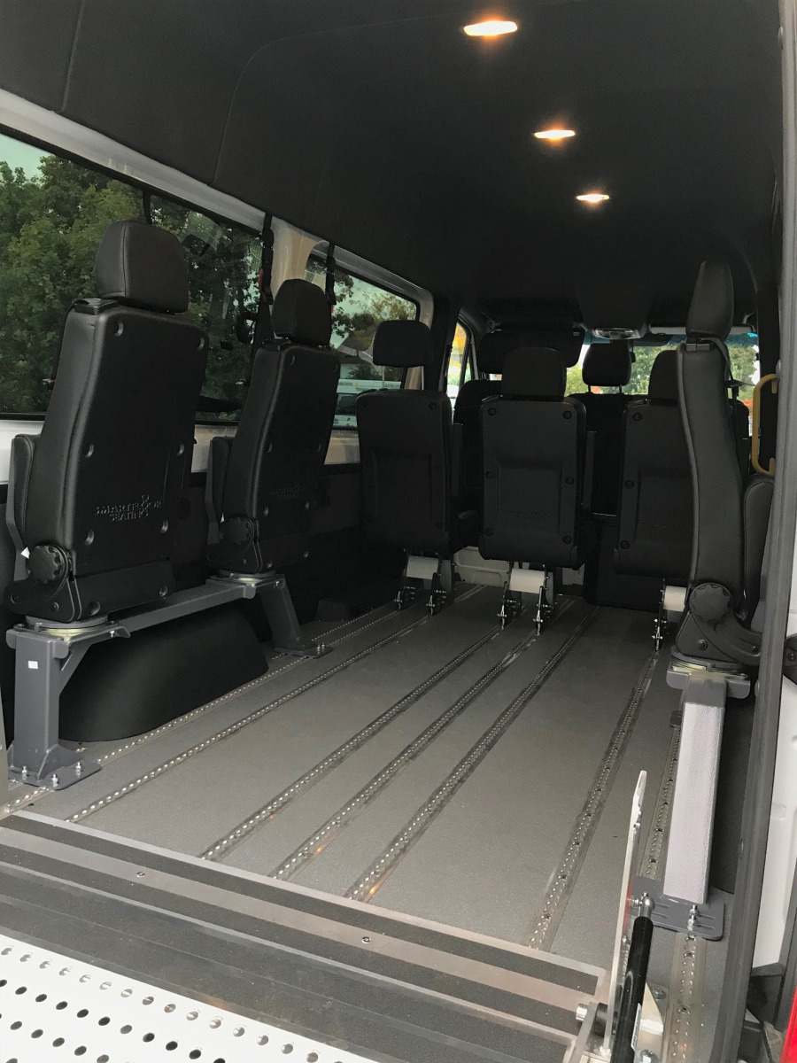 Die Kleinbusse verfügen über Rollstuhlrampen bis hin zu einer höchst modernen technischen Ausstattung. Drehkippsitze und spezielle Gurte sorgen für perfekt ausgestattete Busse.